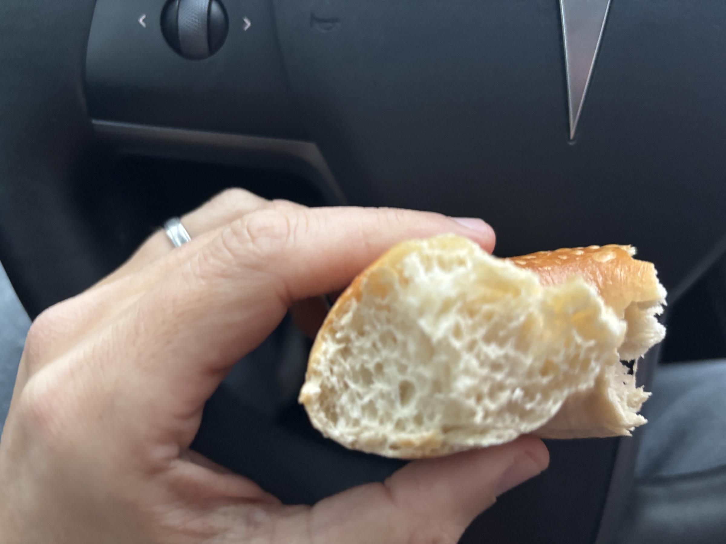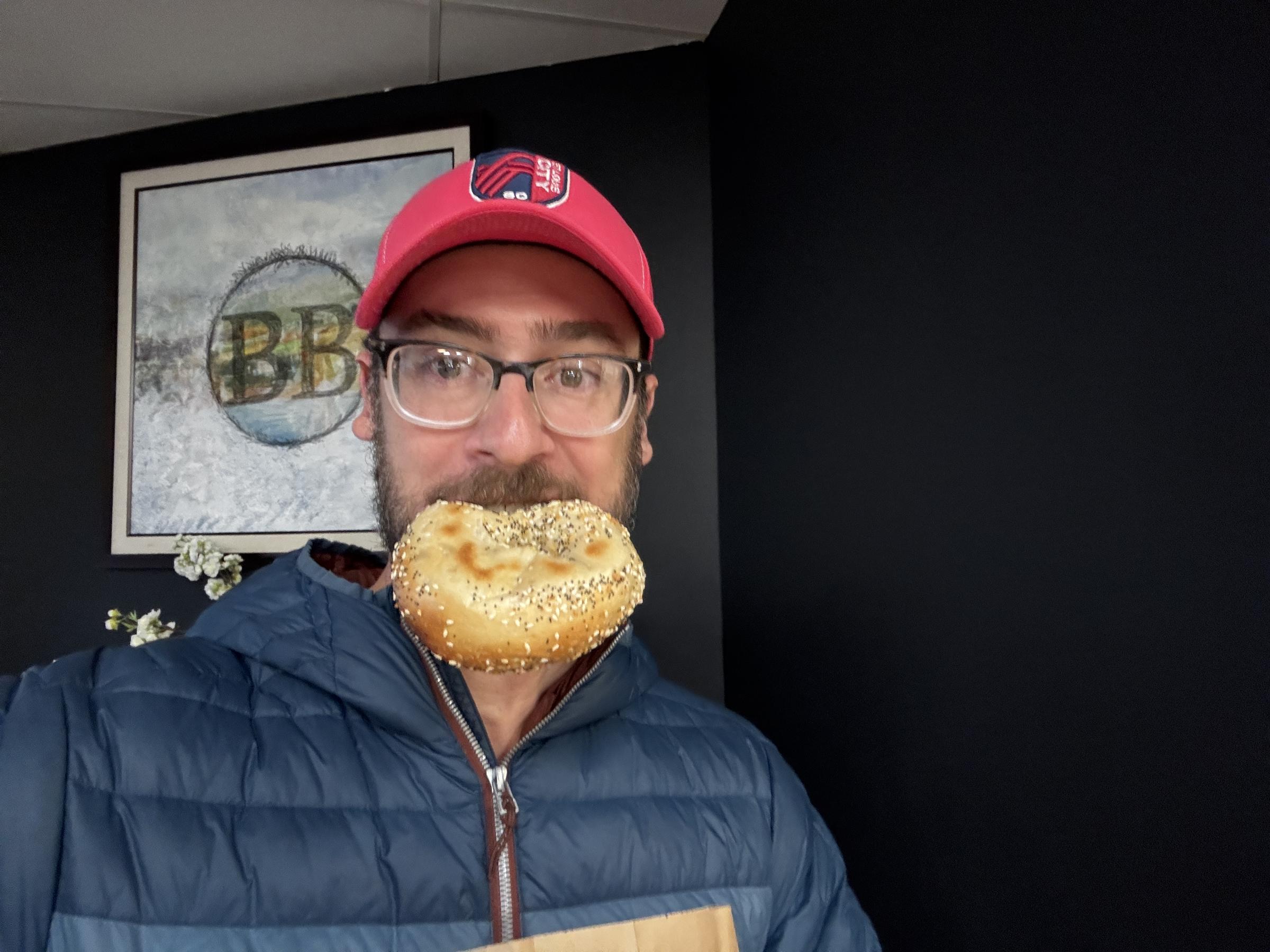 After finally getting my bagels, and in front of 30 people, I took a bite.