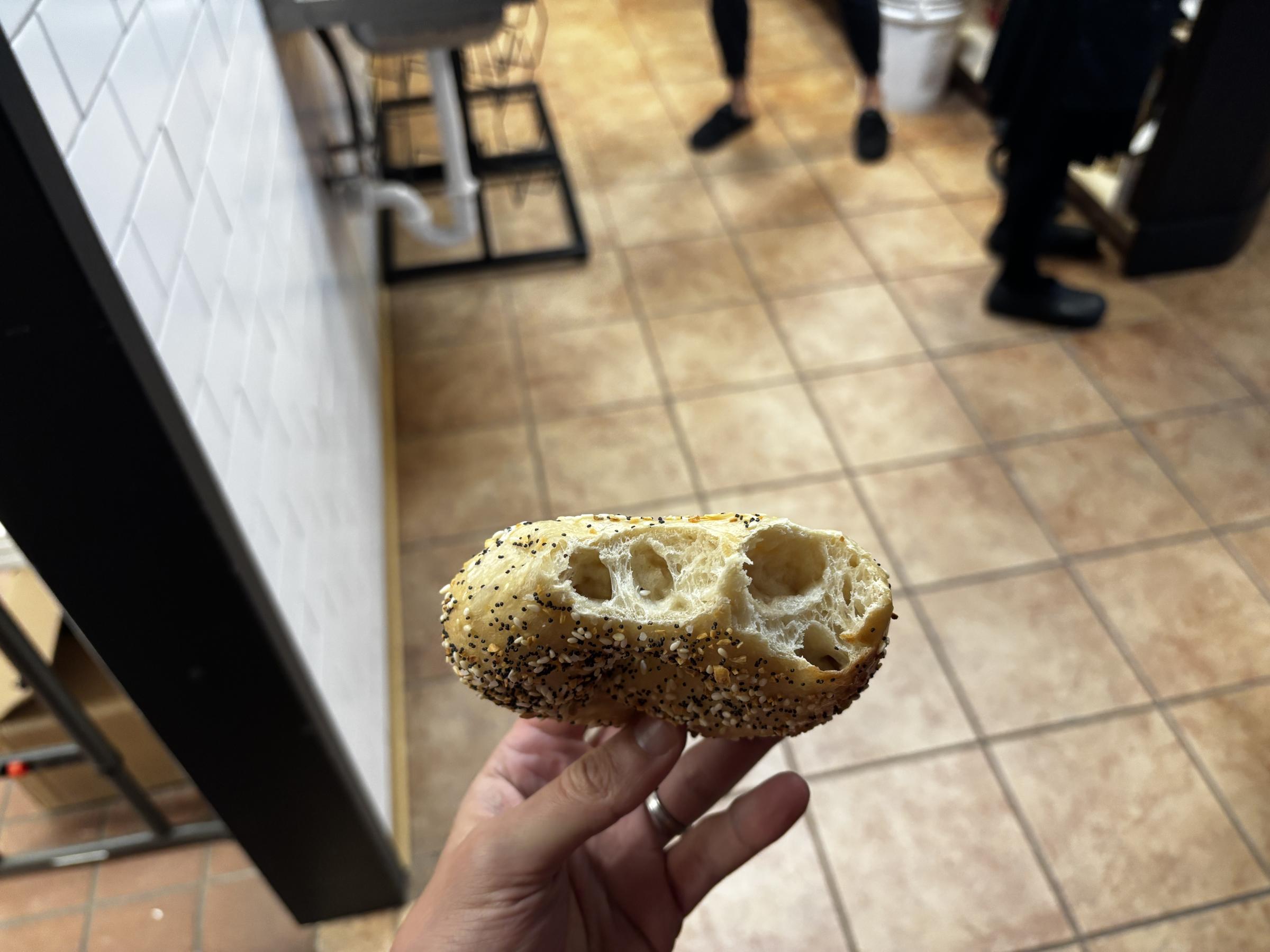 Updated 11/4/2025: They figured out all kinks in the process and the everything bagel friggin rocks. Chewy, crisp on the outside, nice salt/garlic/sesame blend on top. Awesome, awesome bagel. 8.7/10.