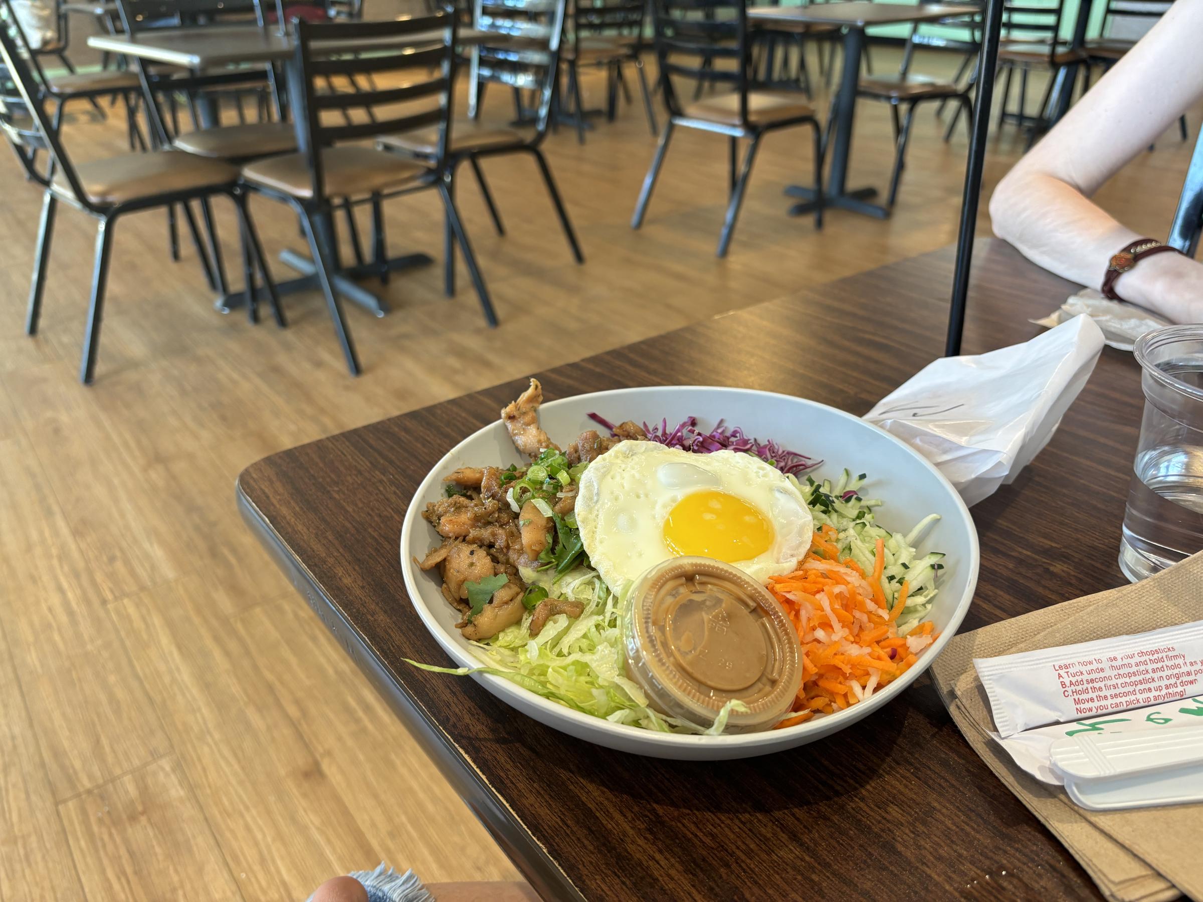 My wife got the rice bowl. It had a Korean bibimbap feel with veggies, rice, egg, and chicken. She ate the whole thing. Simple, healthy, and fresh with good flavor, she gave it an 8.9 / 10. She compares it to Lona's Lil Eats but with a bowl instead of a wrap.