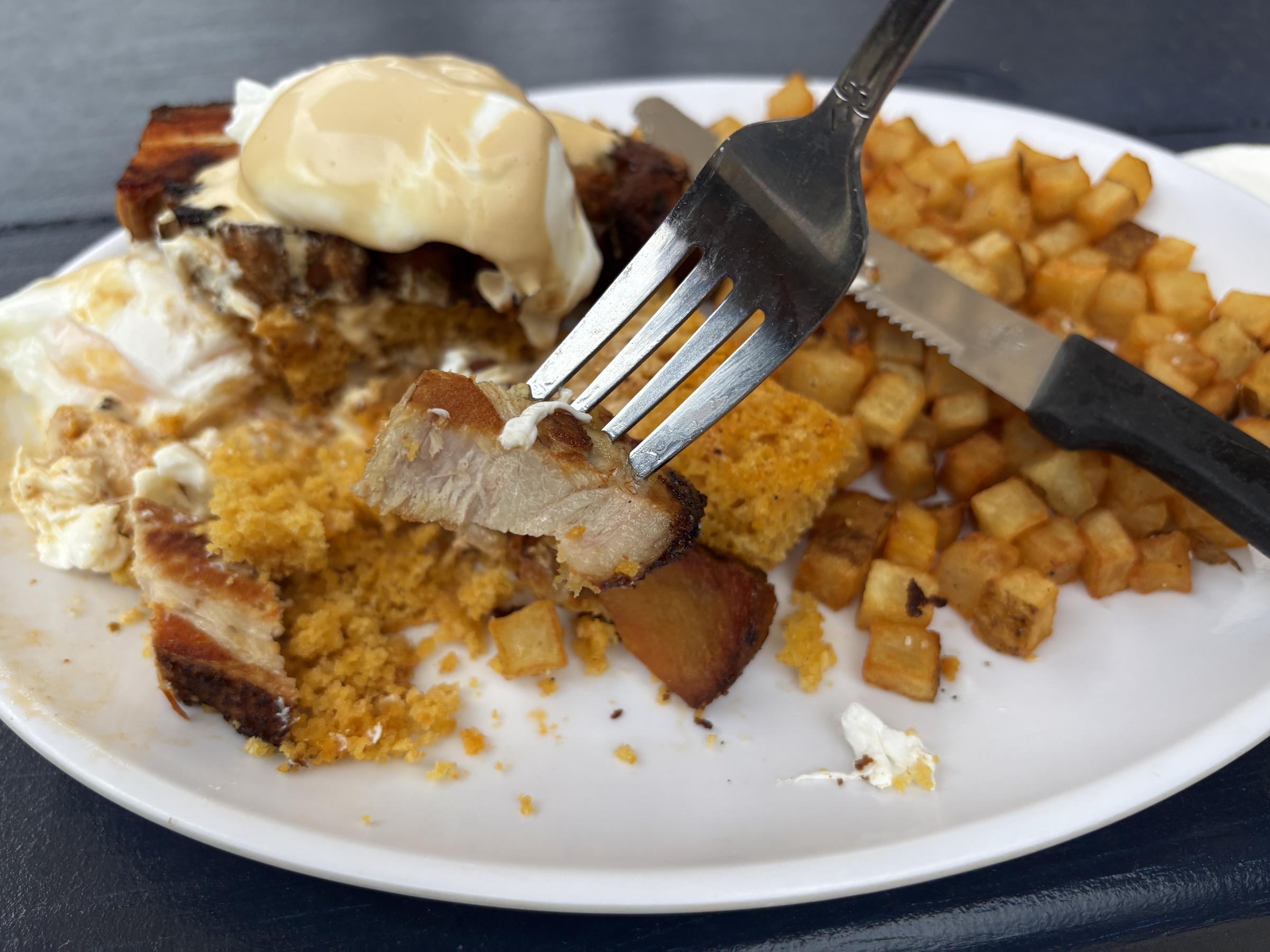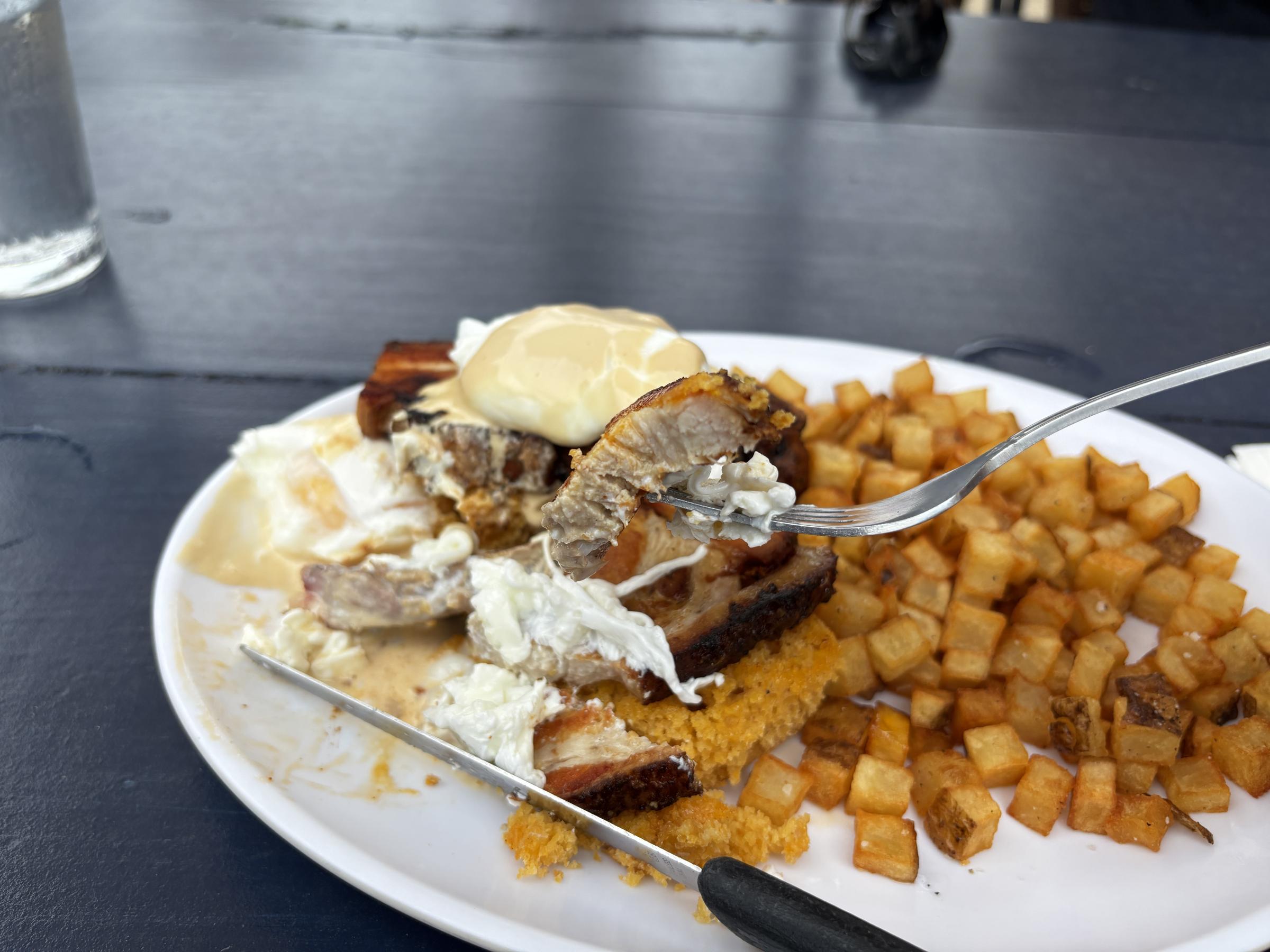 And man, it was a tale of two dishes. The potatoes on the side? Absolutely fantastic. The eggs? Perfectly poached. The hollandaise and cornbread? Sweet and delicious.