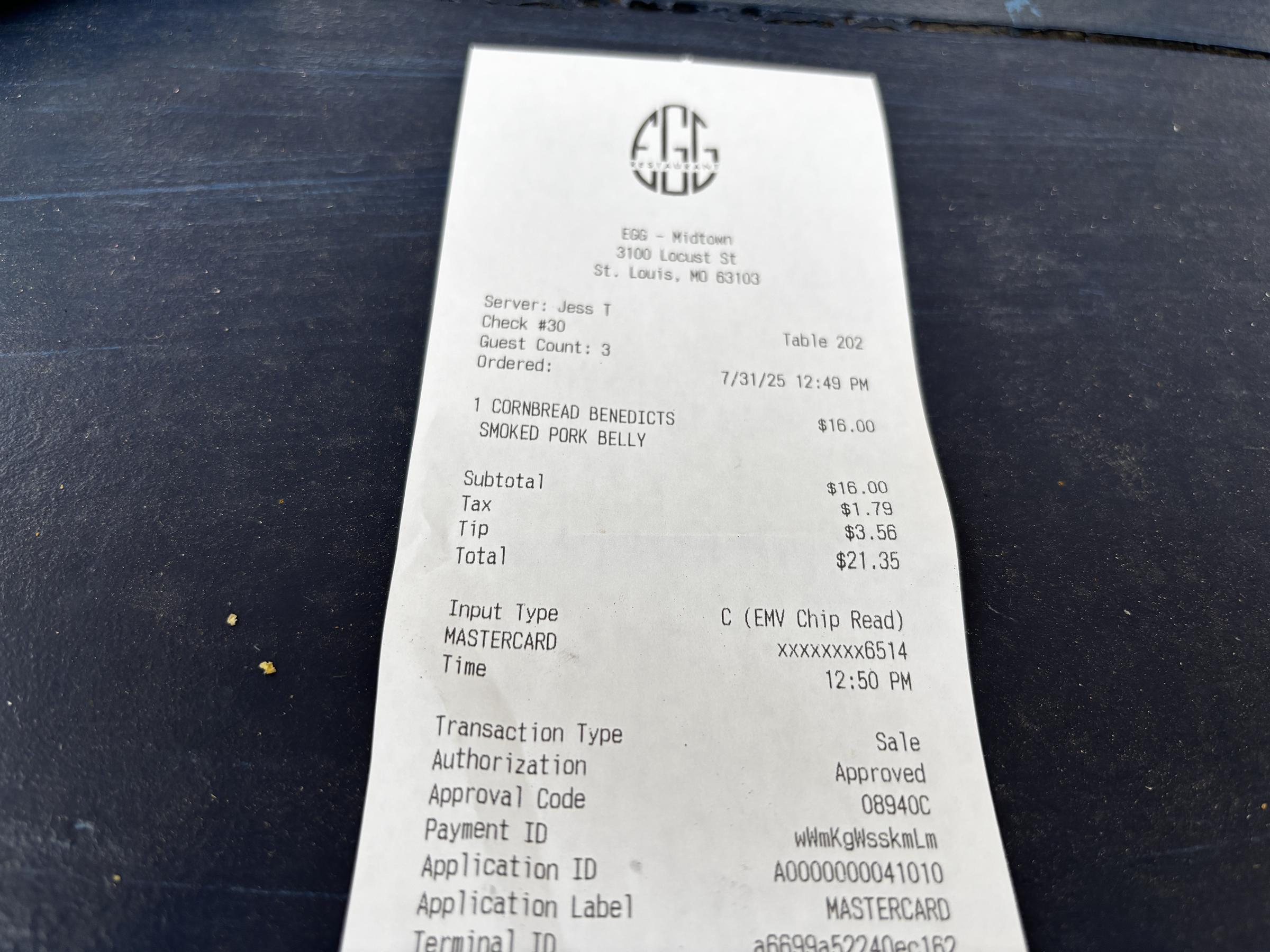 Egg@Midtown Takeaway. Egg@Midtown's execution ended up with some eggs on its face. My Pork Belly Cornbread Egg Benedict, the biggest rec on Reddit and Yelp, egged out only a 7.1/10, landing there only because the potatoes were legitimately some of the best I've had in St. Louis.