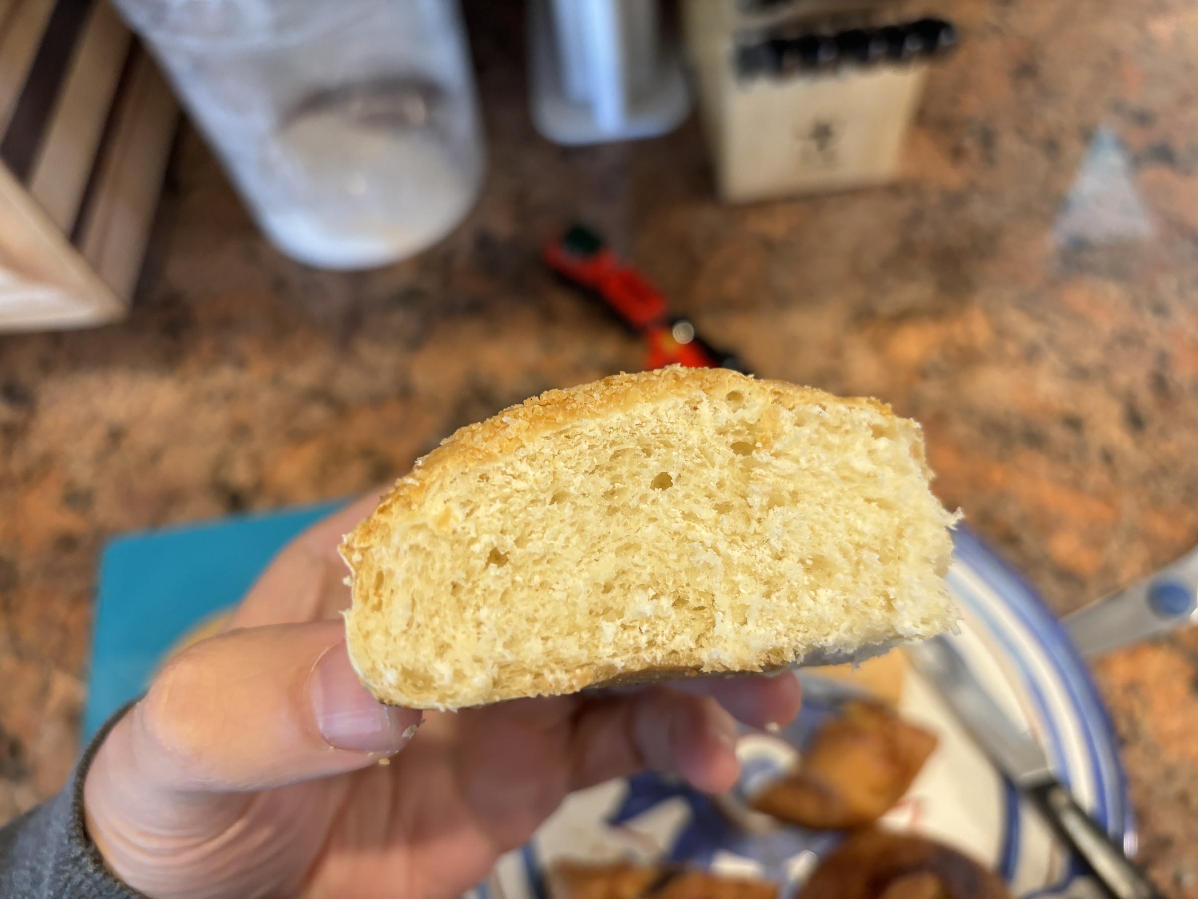 The bread is sweet but not distinct. It's not quite fluffy or airy. Just missing slightly on a lot of aspects that make me enjoy a bun.