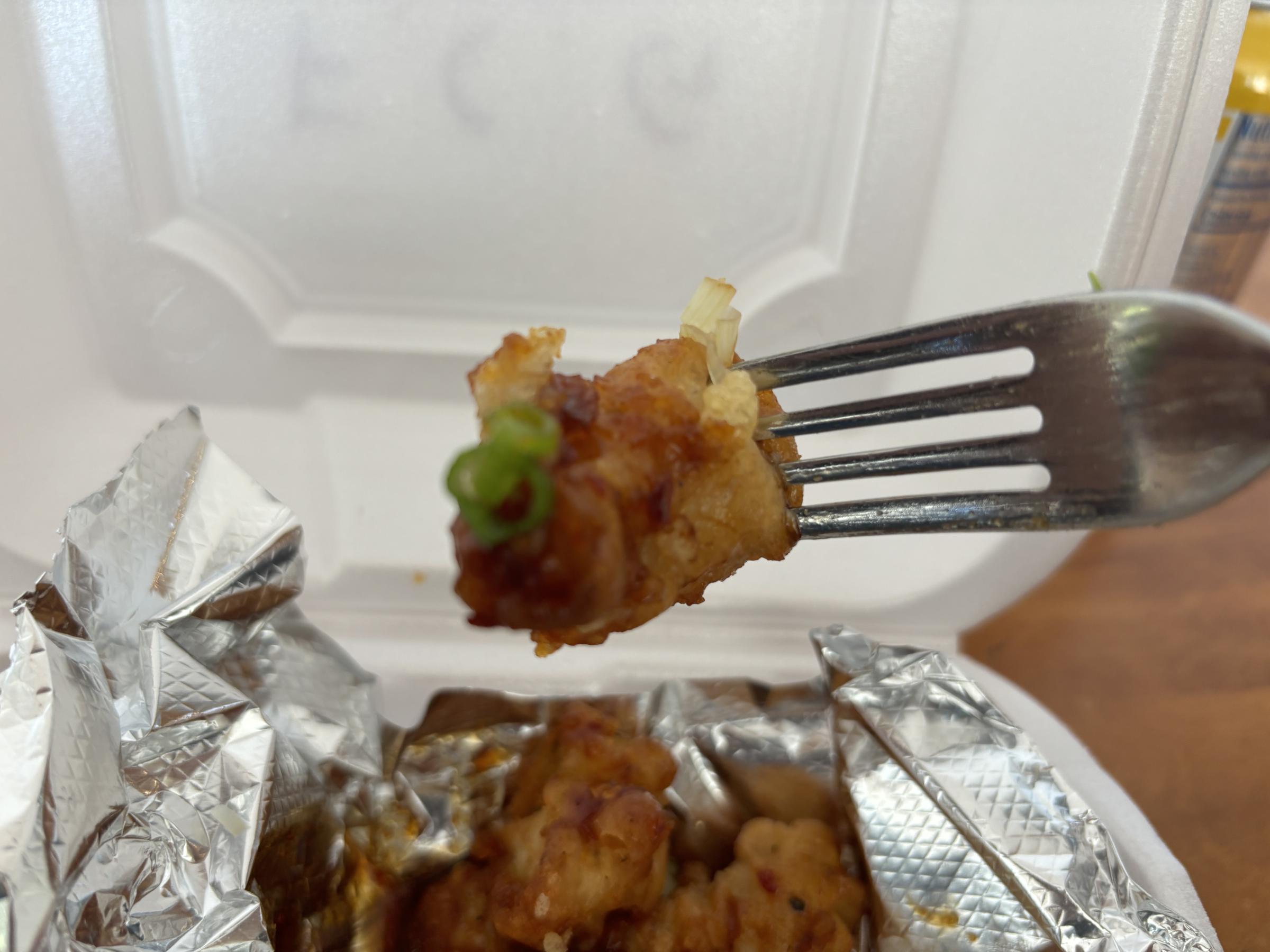 This time, I went for the full-force fire chicken. You'll feel and taste the jalapeno the whole time, but the saltiness of the soy sauce and the sweetness of the garlic comes through too. It's all on top of a pillow, batter that hold the sauce adds the fattiness and chew you'd expect, but doesn't get in the way.