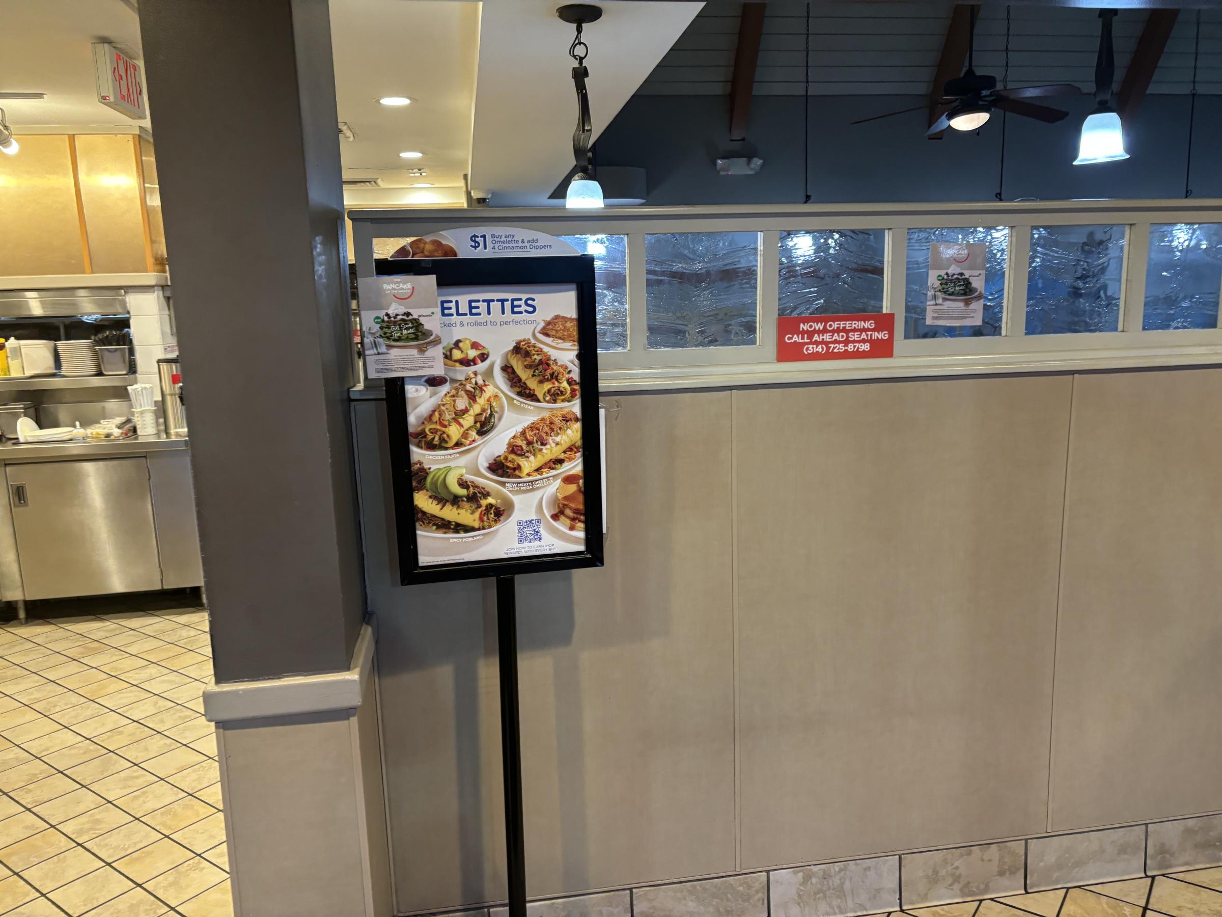 The kids' meals are also expensive: $7.99 for a kids' combo. The same combo costs $5.69 at the Olivette Diner. The kids get eggs, pancakes, and a piece of bacon or sausage. The kids eat the stuff up. I think the slightly sweet pancakes are the reason. They add syrup, whipped cream, and even chocolate chips and devour them.