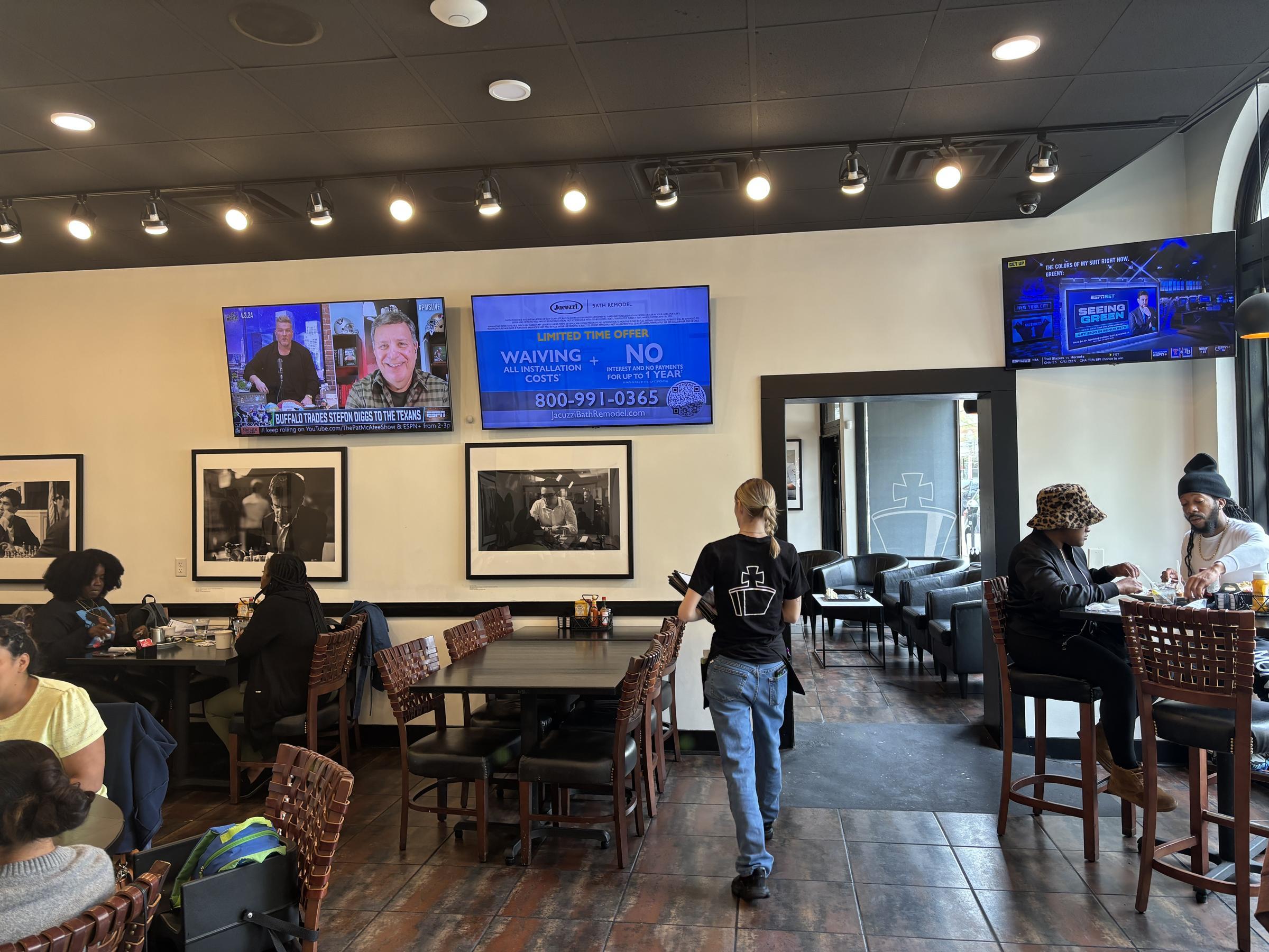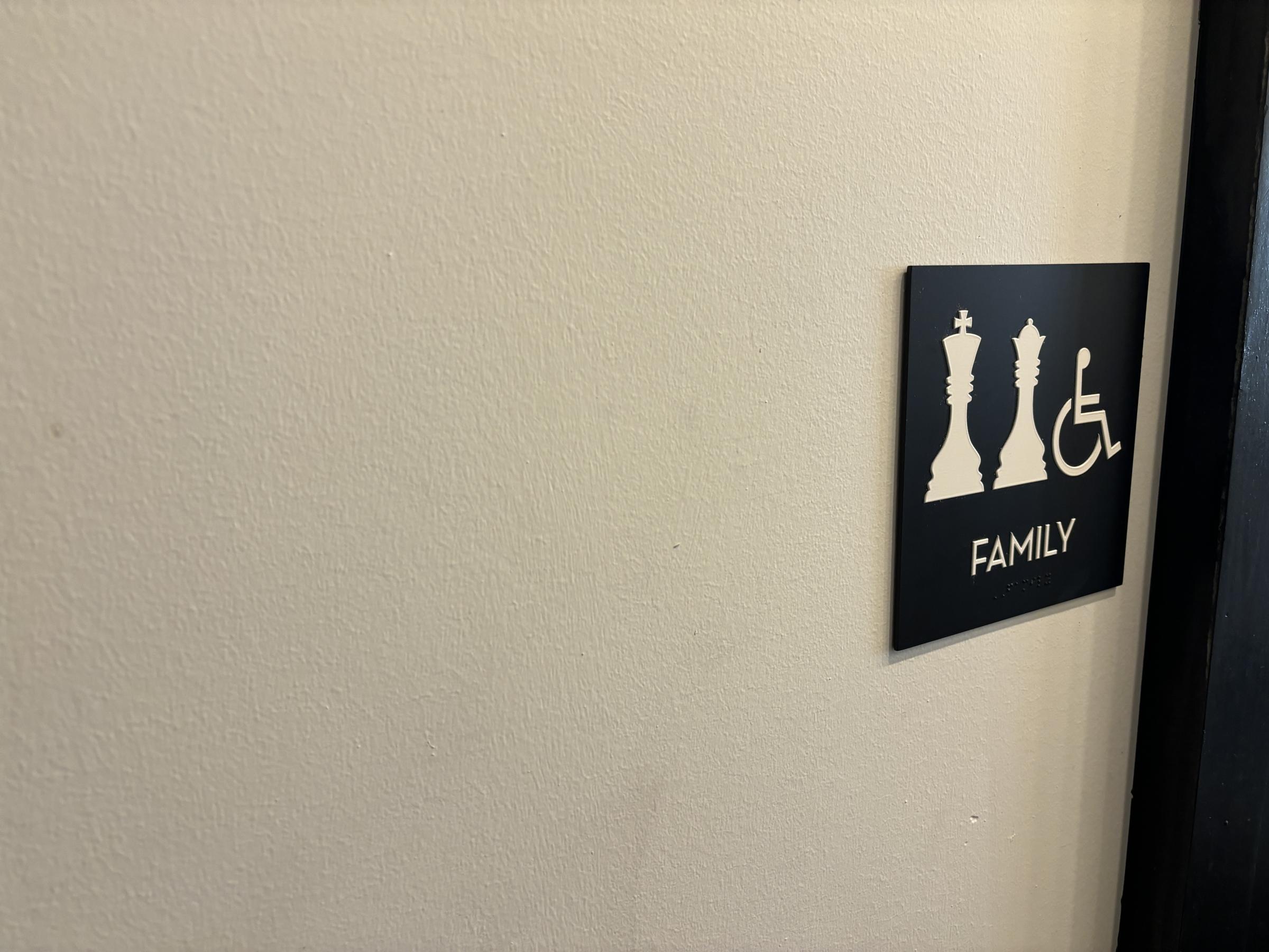Kingside does a great job of weaving in chess puns across the restaurant. It's full of chess allusions, from menu items to the placards outside of the bathroom.