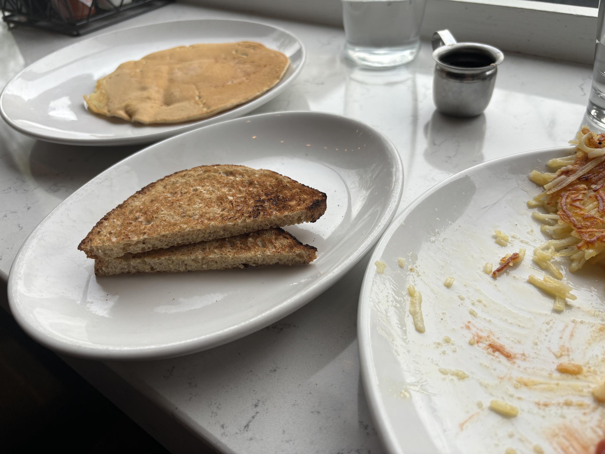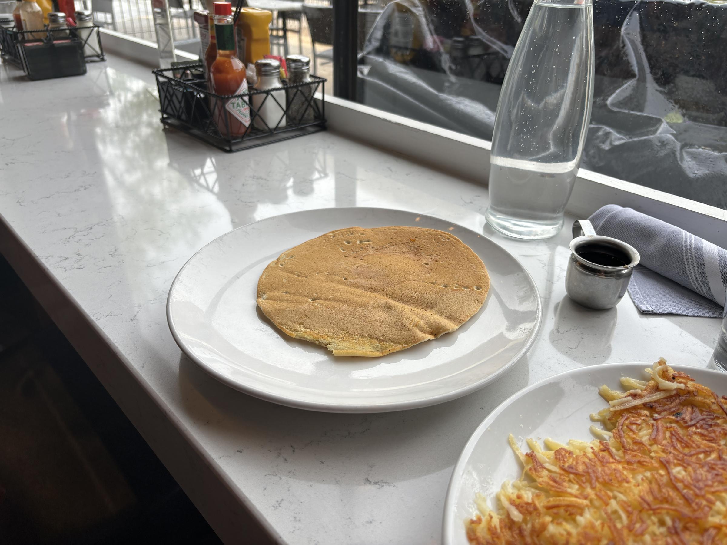 The pancakes were a big miss ($4 / pancake). At 4.1 / 10, they were thin and dense. They didn't beat IHOP, never mind The Flood Line.
