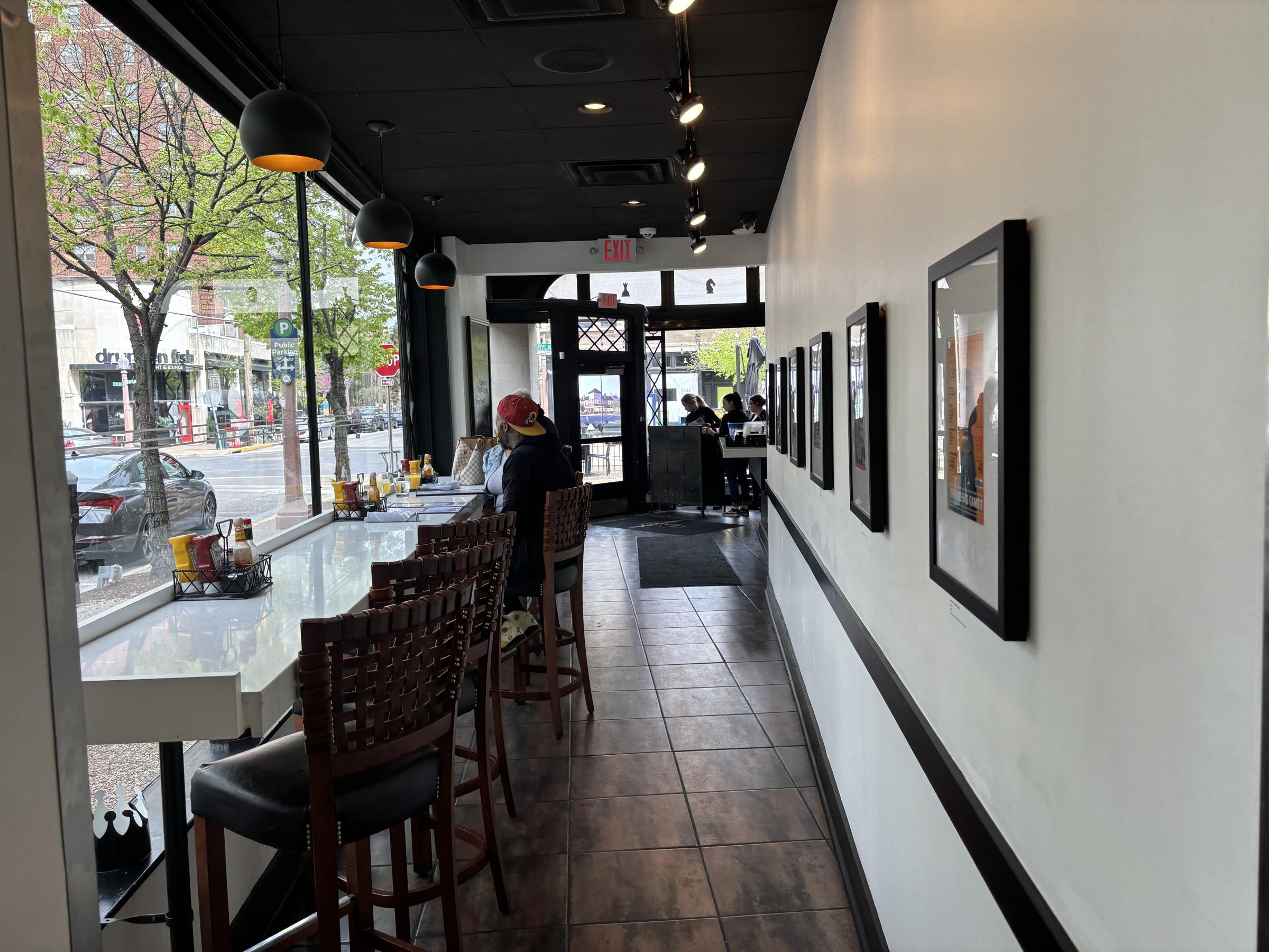 The service was fast and friendly on this rainy Wednesday morning. They have a big seating area in the back with tables, but I sat at the window overlooking the north patio area. The patio would make for a fun outside brunch on a warmer day. Several other women were eating lunch alone next to me.