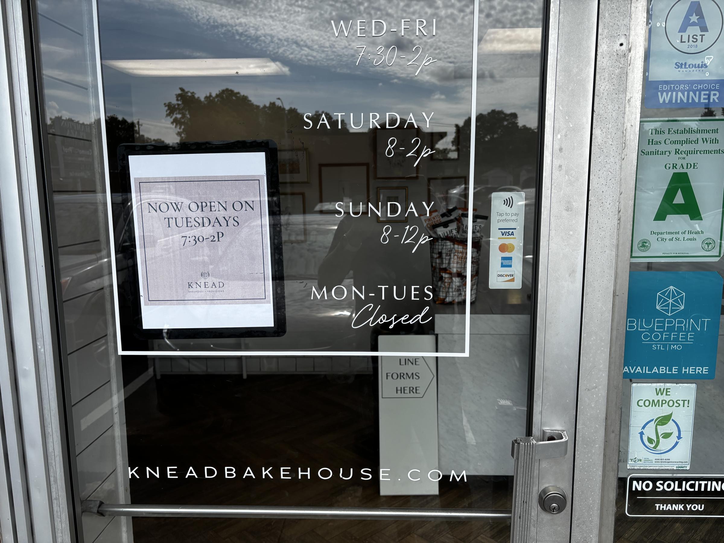 Knead Bakehouse + Provisions Takeaway. Knead's beautifully baked bread and brilliant pastries cost a pretty penny. Overall, I'd give it an 8.4 / 10 as a bakery with the highlight being the bread. It could have been an 8.9 / 10, but the prices seem very high for StL. $8 for a kouign amann was over the top, but $9 for a sourdough loaf is also more expensive than $8 at other bread shops. The quality is undeniable, but the cost keeps it from being an everyday occurrence.