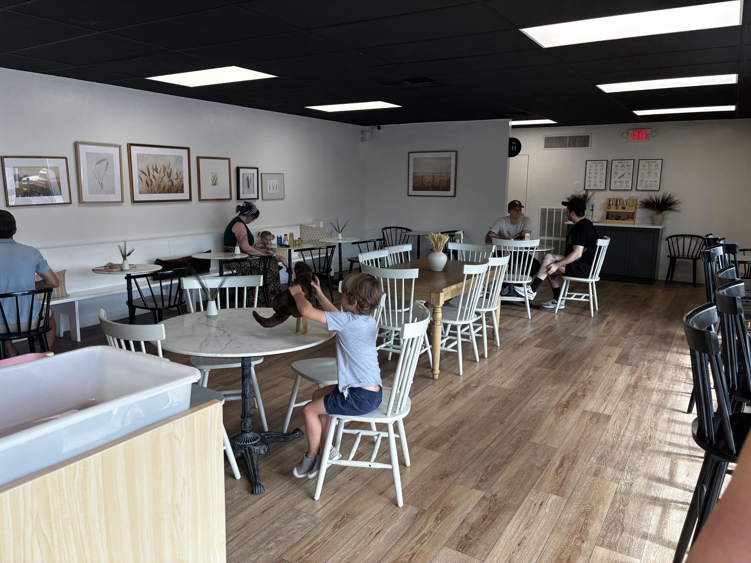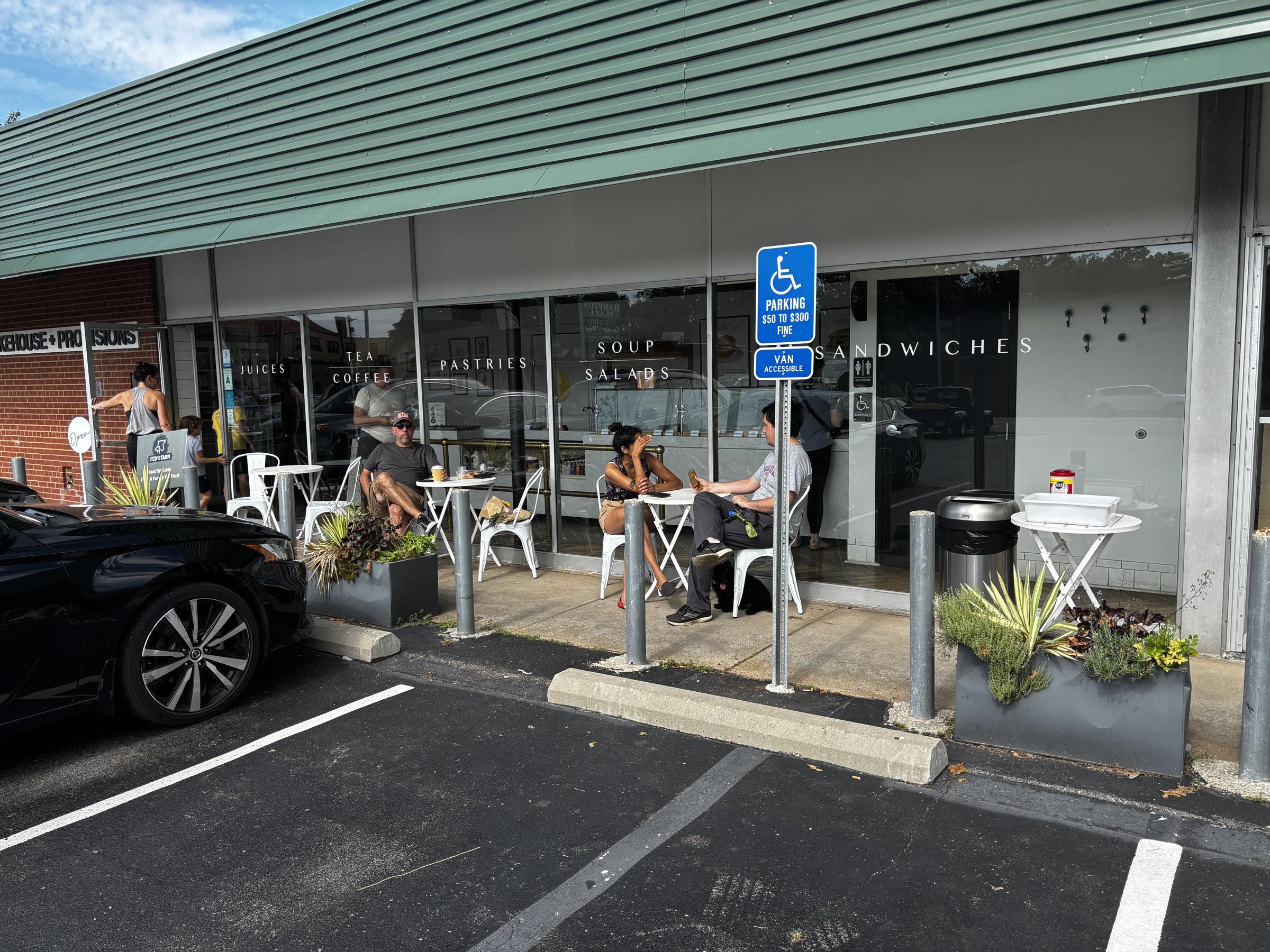 The atmosphere is airy, open, and modern, featuring an impressive open kitchen and a sourdough display. They have seating both indoors and out, operating on a get a number after you order system. Our food was ready in under 10 minutes on a Saturday morning. Parking in a dedicated lot.