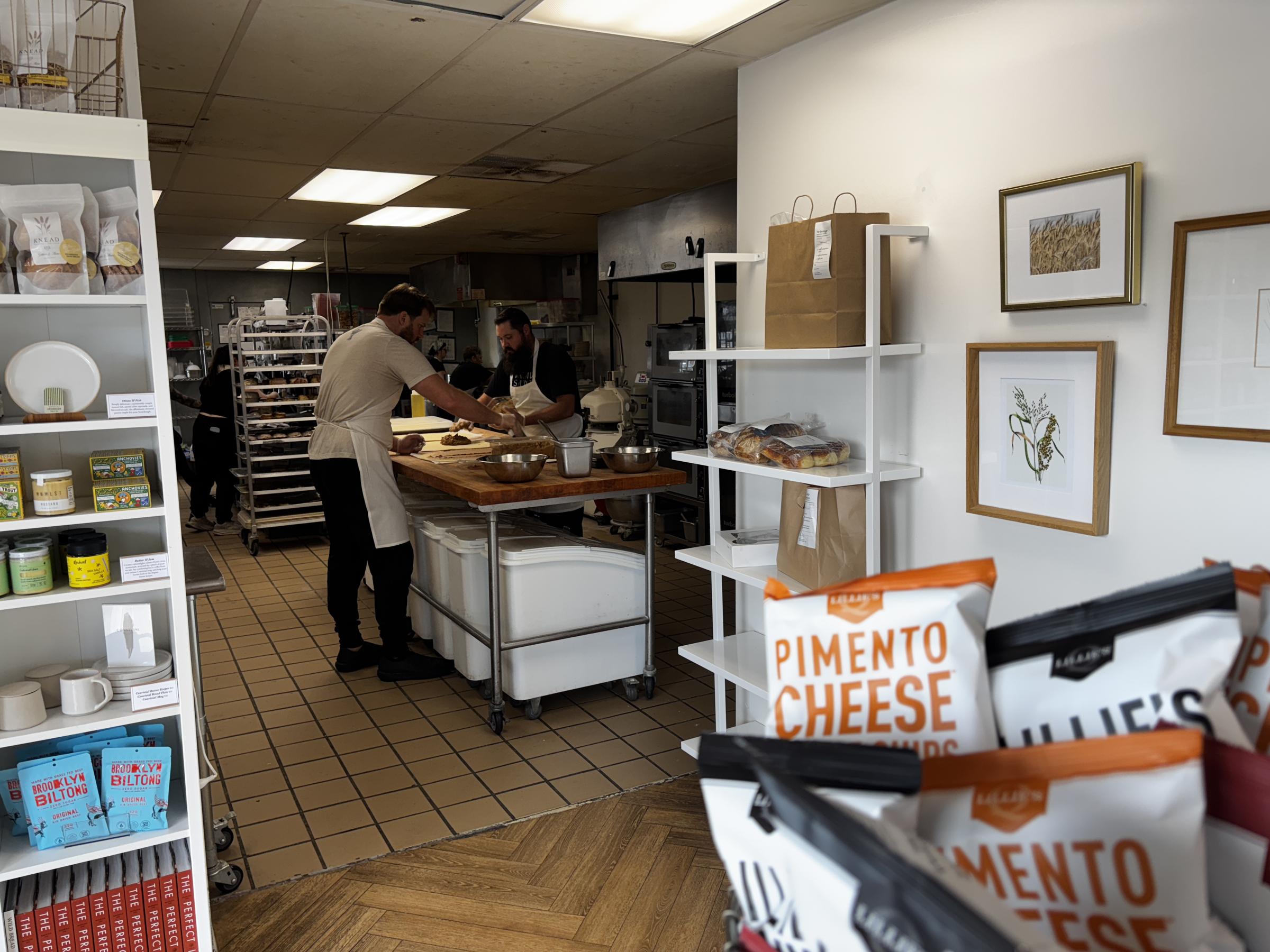 - The amazing open kitchen where you can watch them bake the bread and pastries.