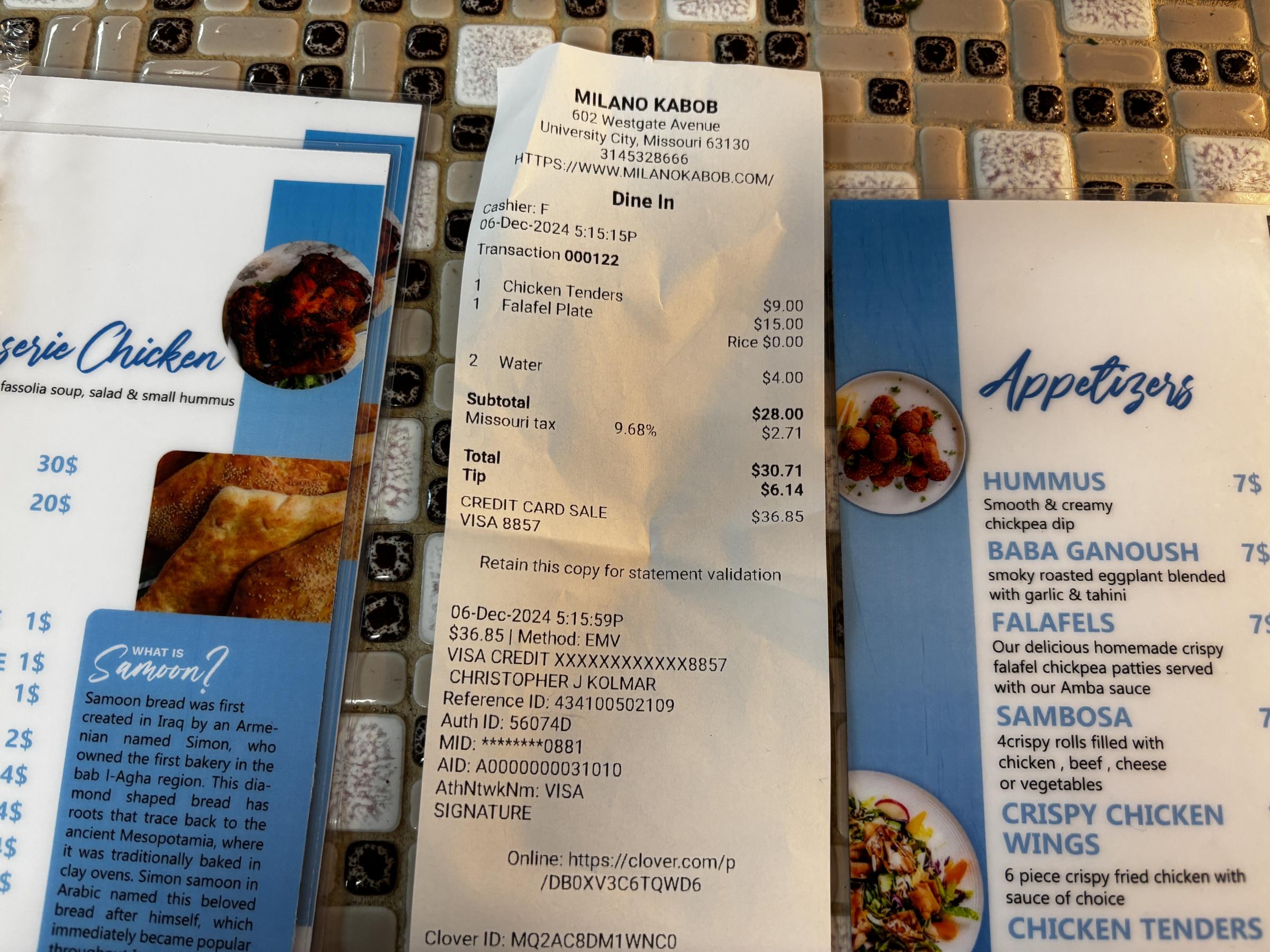 Milano Kebab Receipt