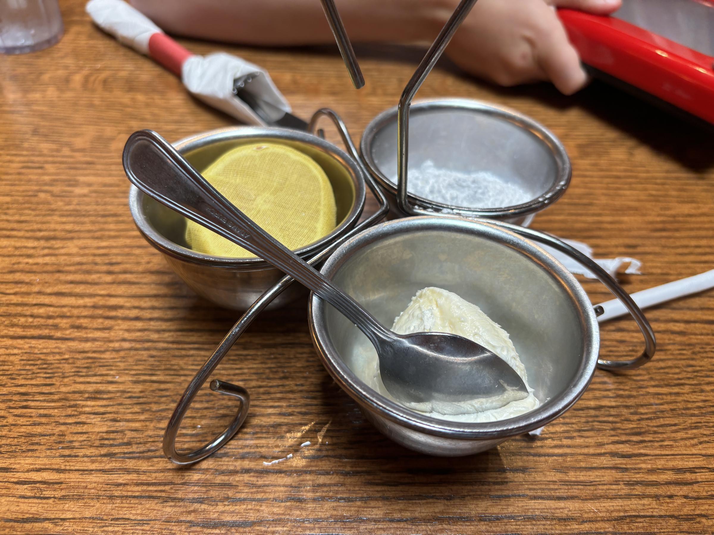 A 9.3/10 on my pancake score; there's not much missing in these bad boys. Topped with a bit of syrup, you can combine a bite in the middle with part of the rim to create a sweet, egg custardy pancake experience. After tasting that, you can up the game by adding a bit of lemon to the same bite to enhance the flavor profile with a citrus kick.