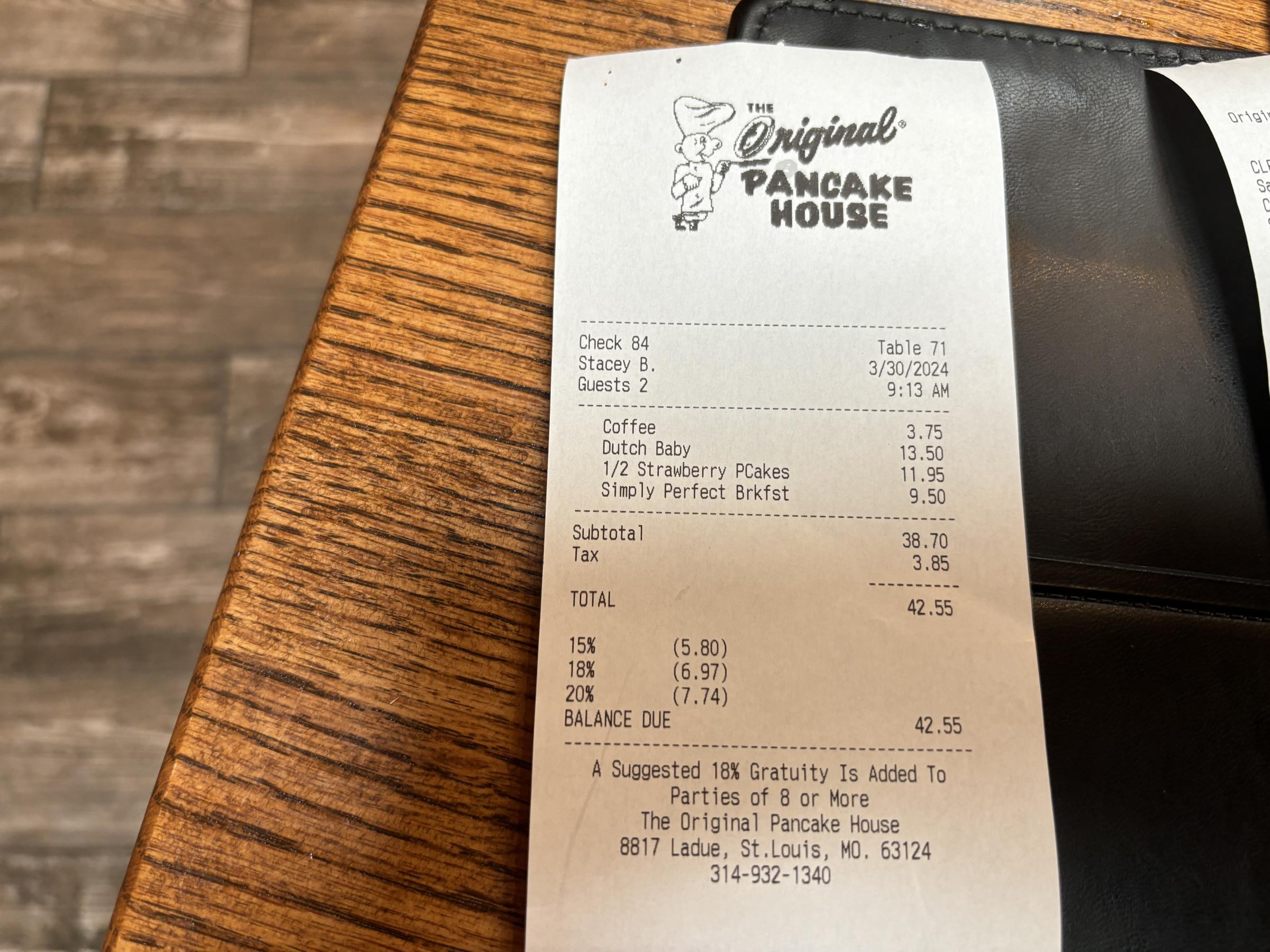 And, to be clear, you don't go to the Original Pancake House in Ladue expecting affordable.
