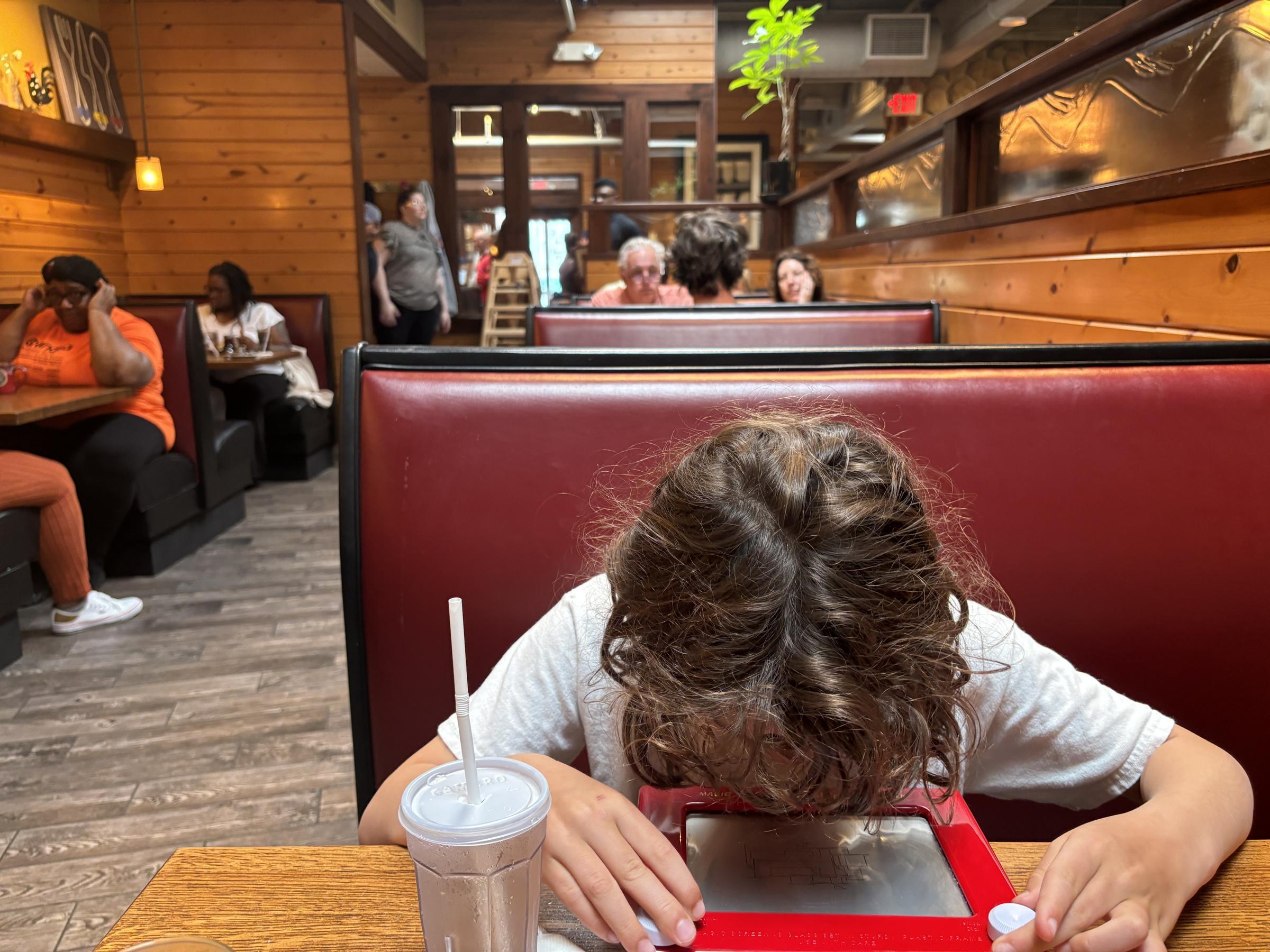 For kids, they have etch-a-sketches and magnadoodles waiting at the entrance. Both my kids loved playing with them while we waited to be seated and for food.