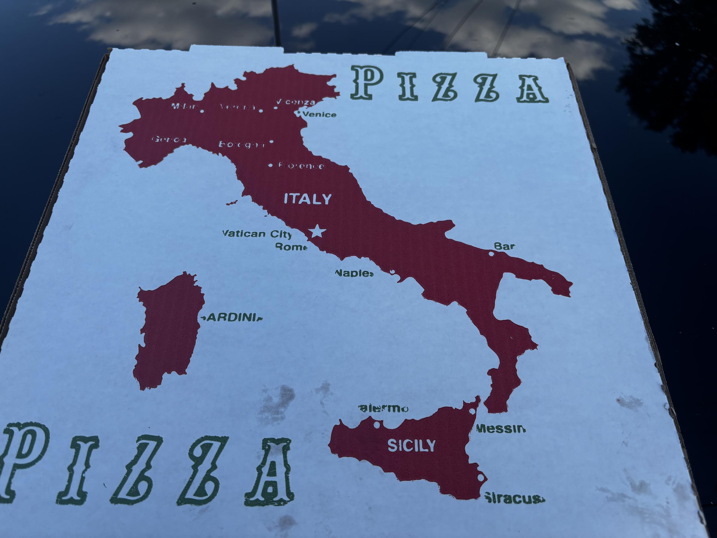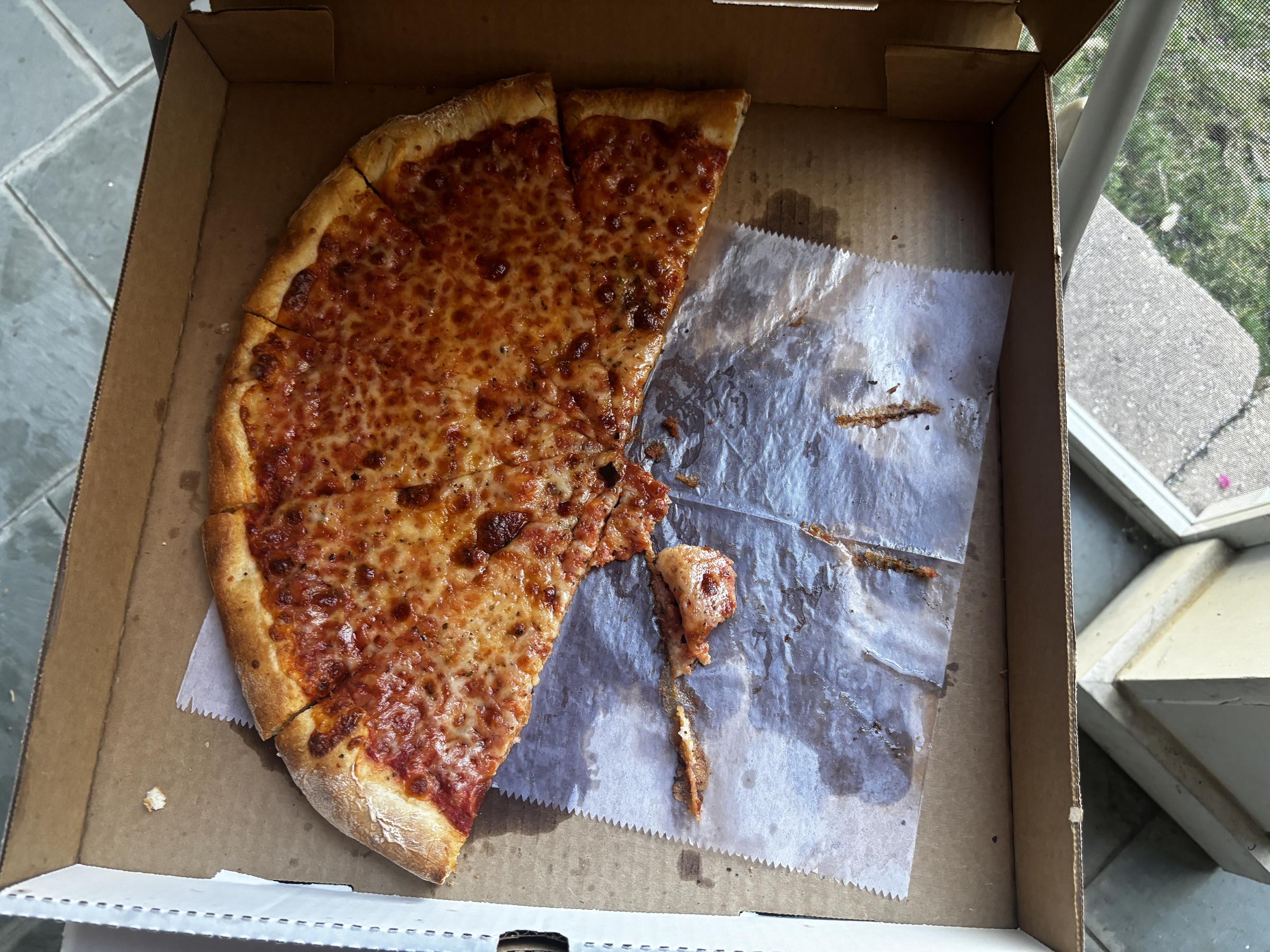 After making the trek across the street to the ATM in the bar, I came back to two warm pizzas waiting for me.
