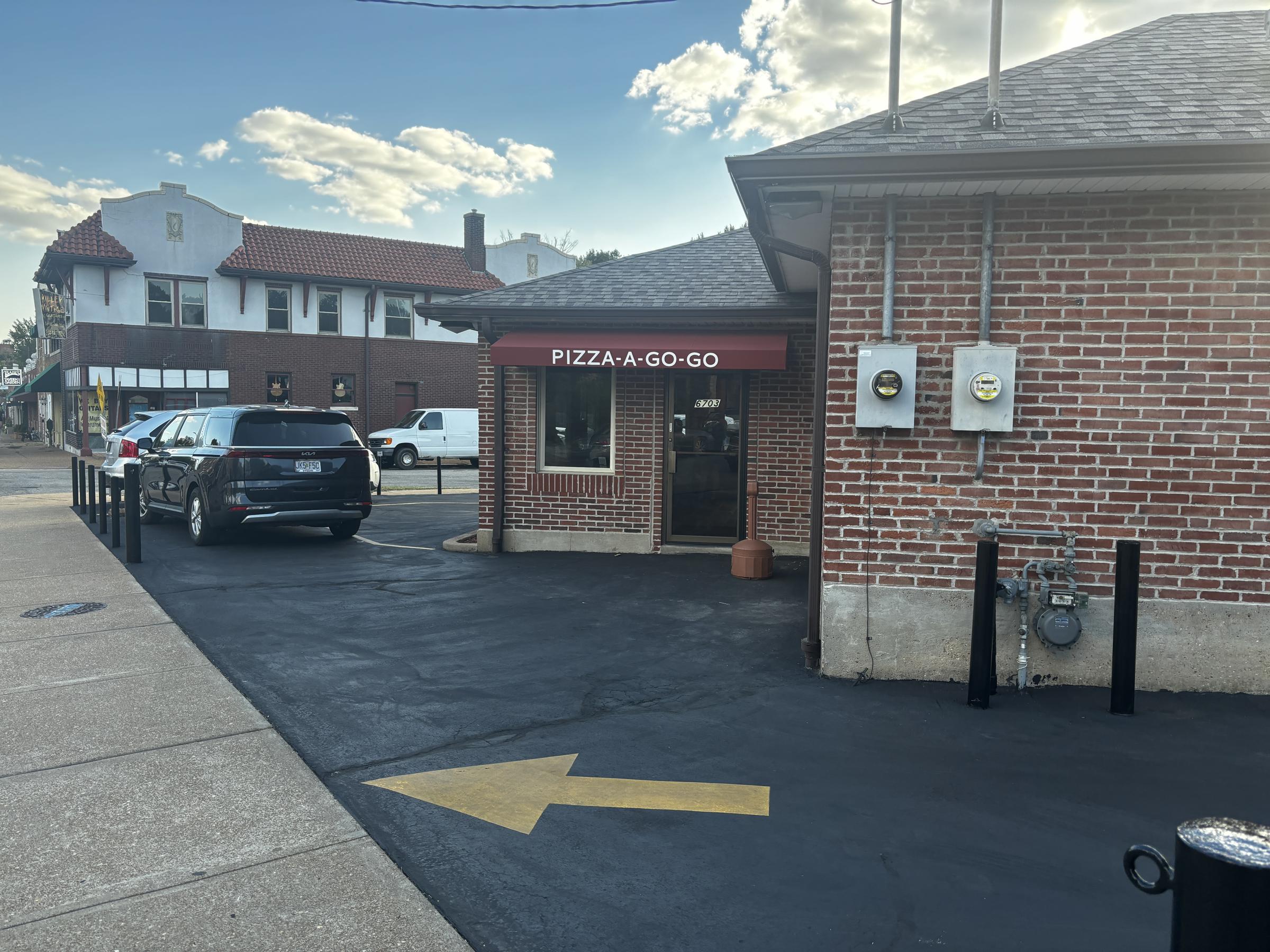 Pizza-A-Go-Go is a true throwback "pizza place." An old brick building houses the space with minimal signage, fitting perfectly with the neighborhood's blue-collar vibe.