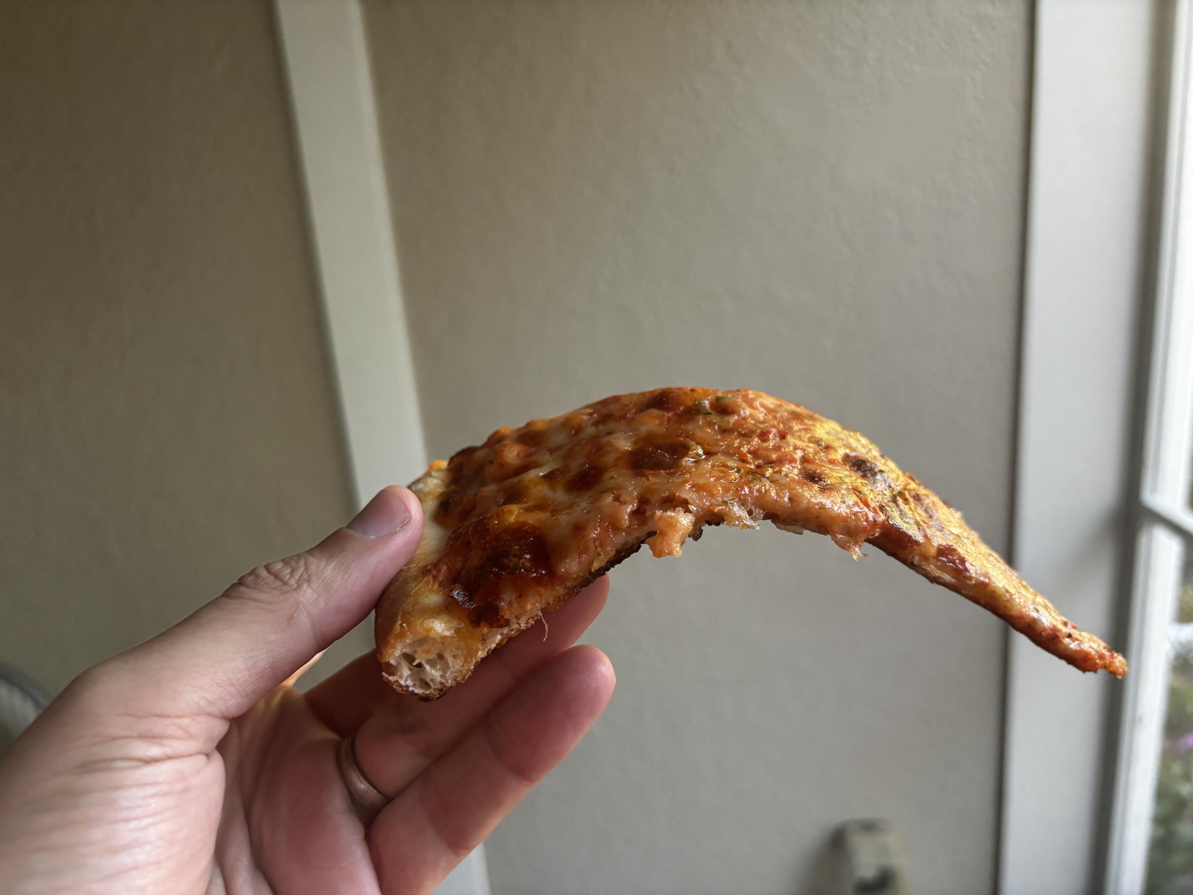 The nit pick complaint is that the crust didn't have any fluff. While Pizza Head's crust has a bit of chew to it along with the crunch, Pizza Go-Go's crust was just straight-up crunchy, with no chewiness.