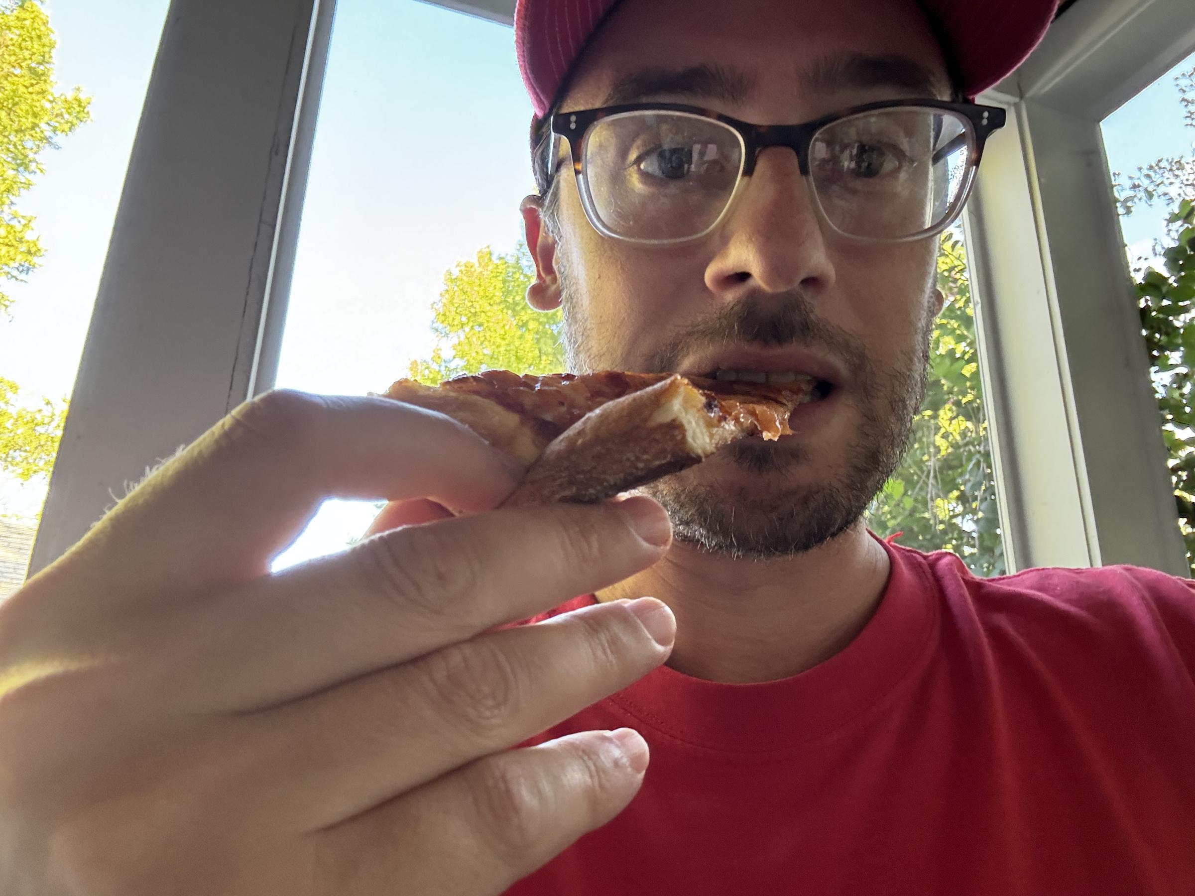 My big gripe is that it's very oily, likely due to the type of mozzarella they use. I suspect they use full mozzarella instead of part-skim, which leads to more fat rendering out and making the pizza greasy.