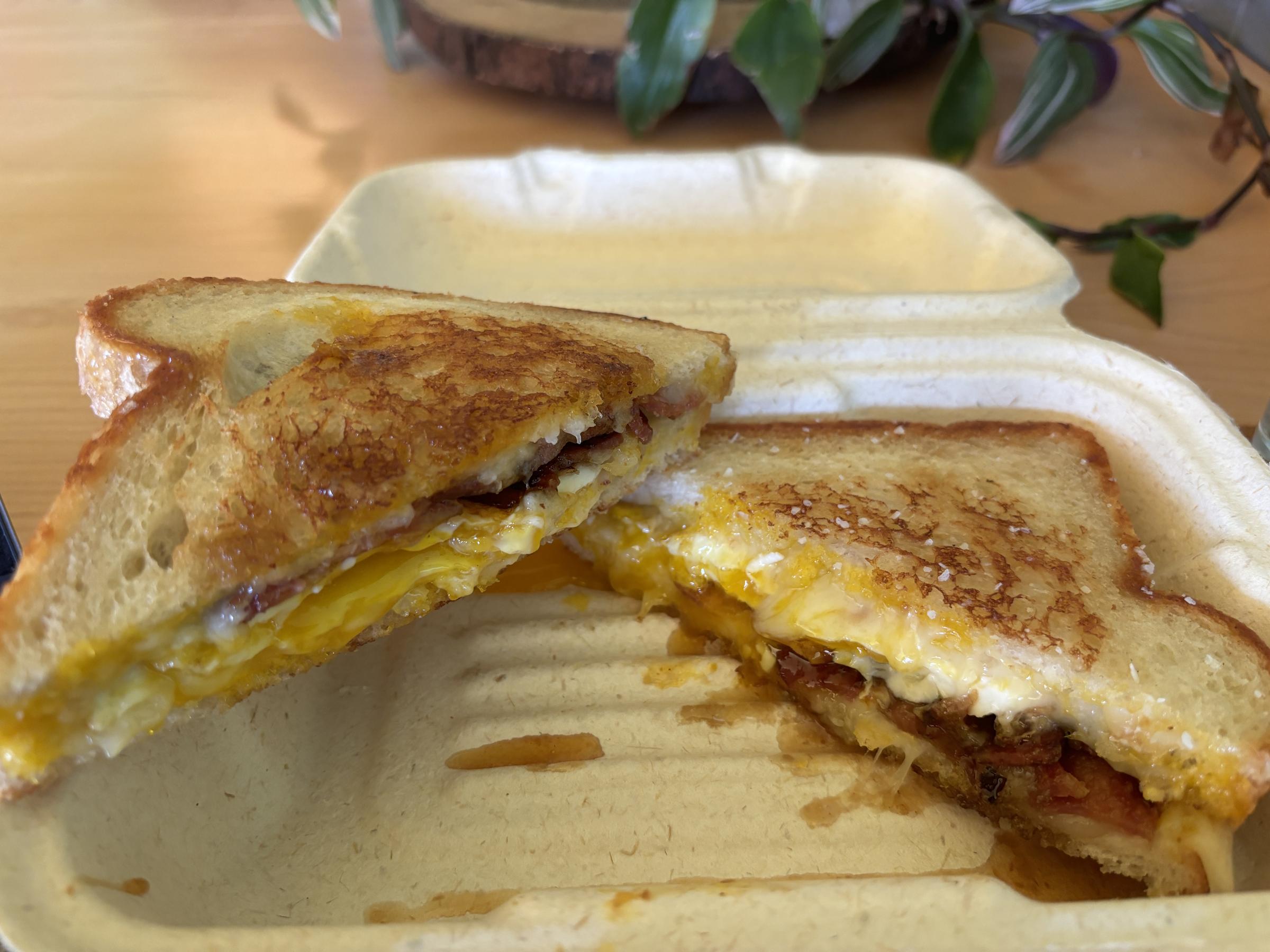 Songbird makes a damn good breakfast sandwich. The eggs, cheese, bacon, and honey all act in tandem on a light sourdough to create a master-crafted breakfast sandwich experience. That perfection comes with a relatively hefty price tag at $13.