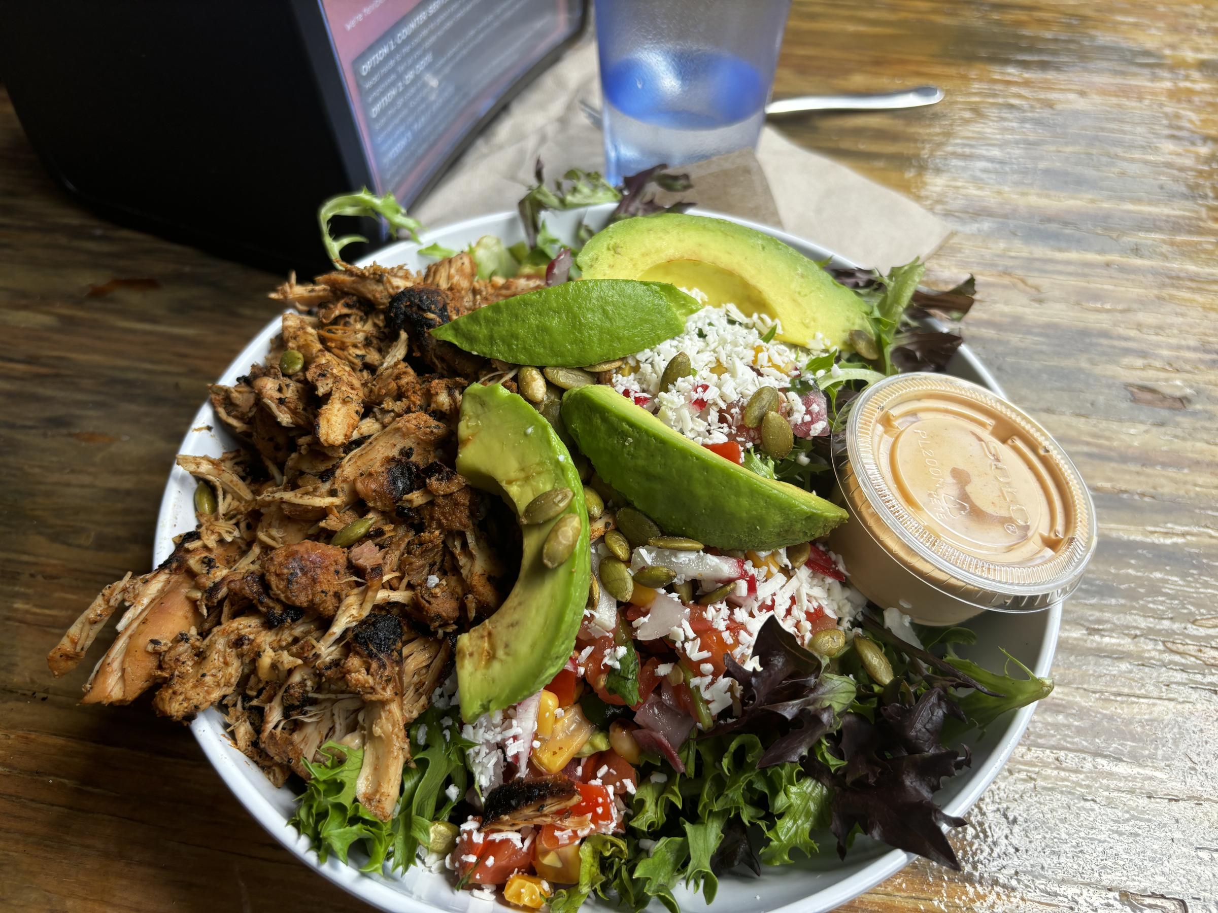 For the main course, my wife and I have settled on the Baja salad with chicken as the family favorite. For $13.25, you get a bowl of salad that is significantly bigger and fresher than Chipotle's and has a hefty amount of chicken. The dressing pairs nicely with the chicken; you can use the remaining chips to help scoop up the last bit of salad.