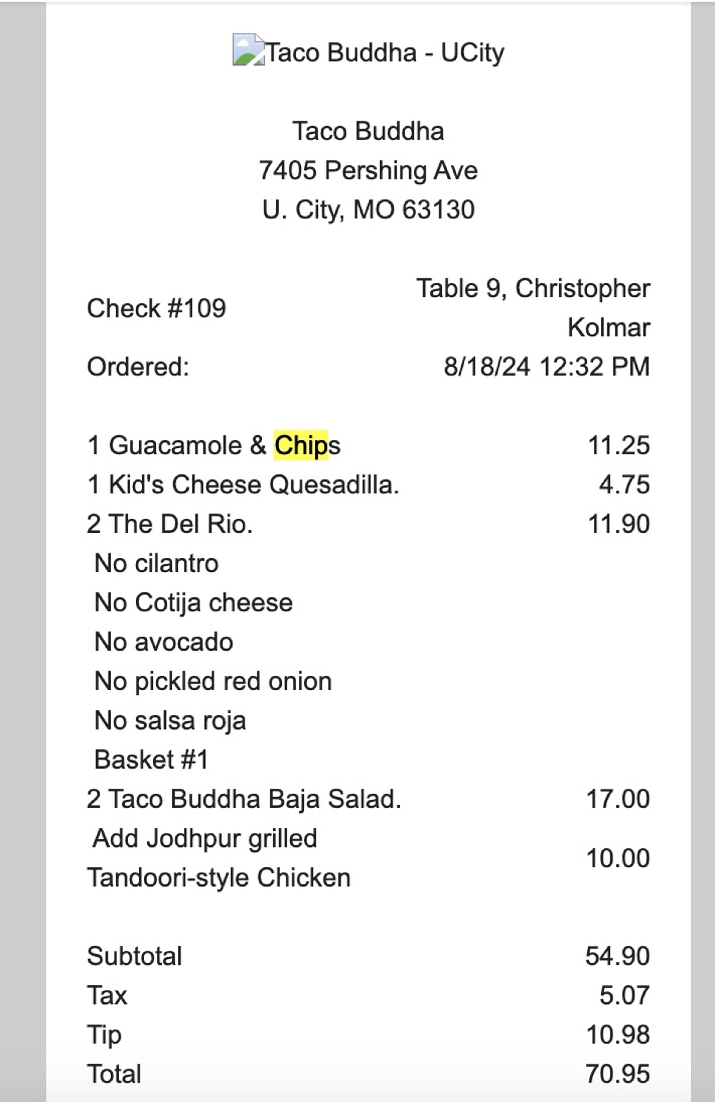 Tip: When you order tacos, the app will prompt you for a "basket." It took me a minute, but think of a basket as a person. Group someone's taco order by "basket" in the app.
