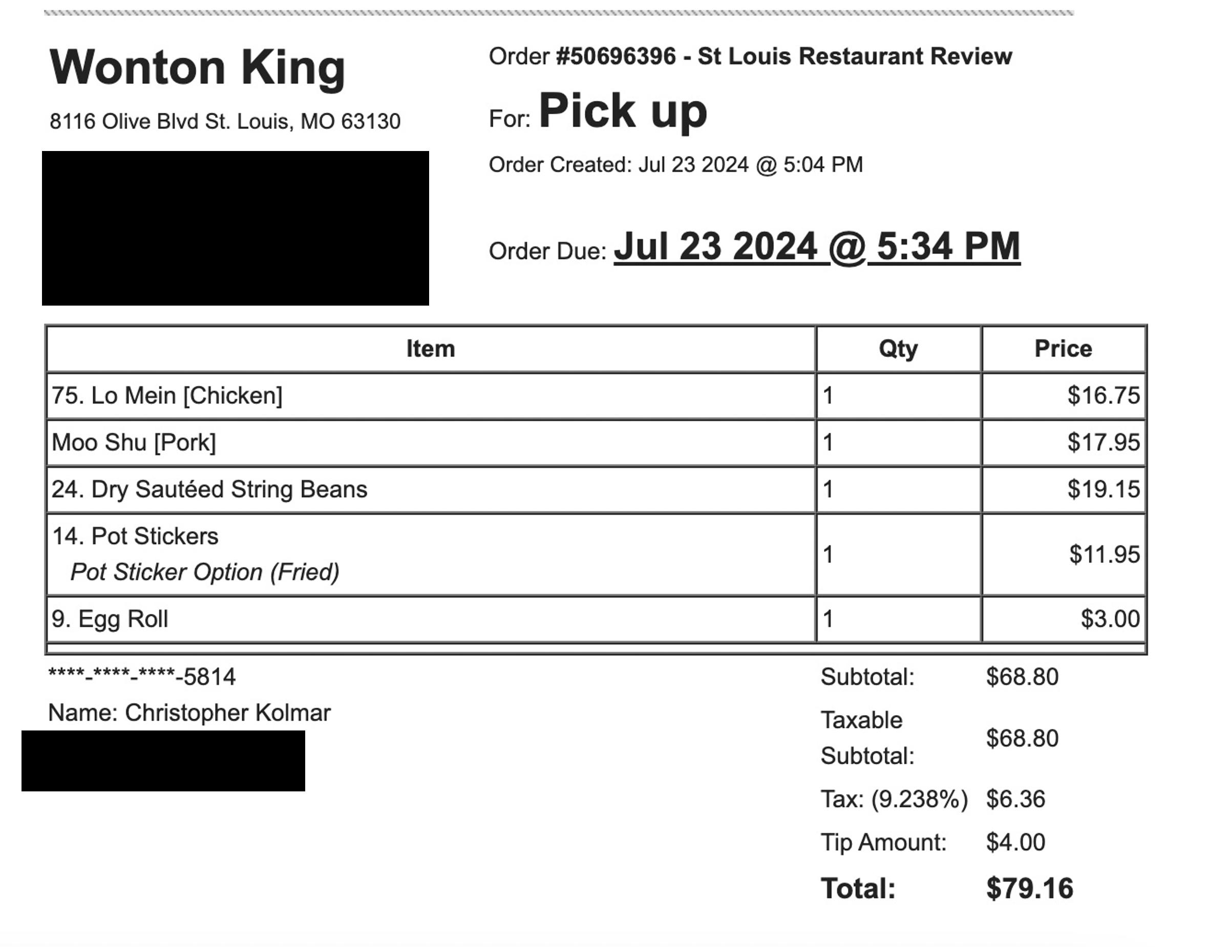 Wonton King Receipt